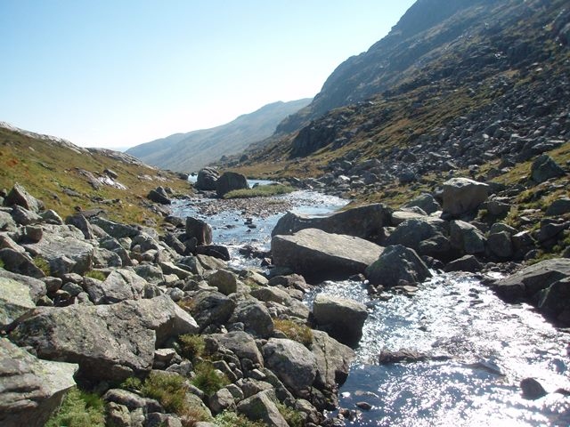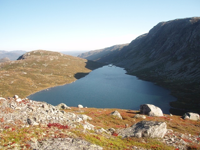 Jeg gik mig en tur i fjeldet for at suge den sidste sol til mig.Her på billedet kan man tydeligt se hvor meget skygge der er fra syd. Udsigt mod Valle. |